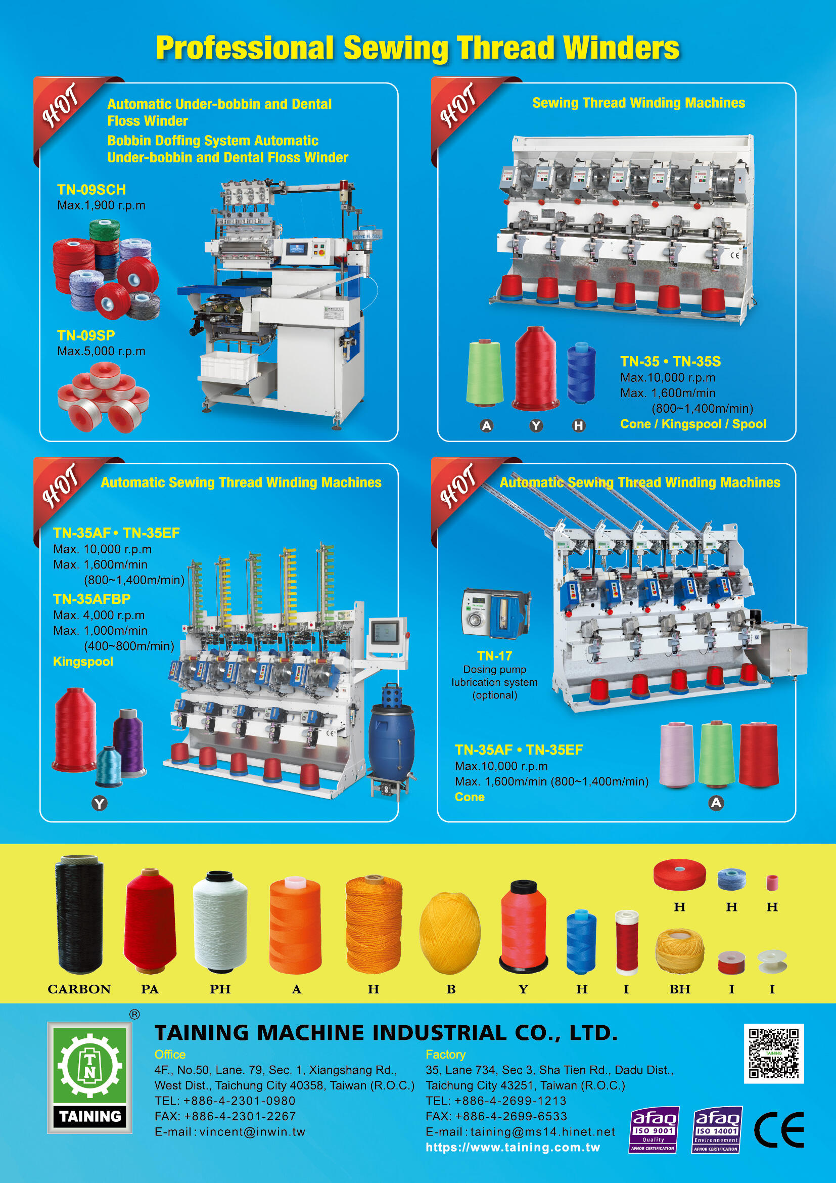 泰能機器工業股份有限公司創立於1968年,專業製造各種紡織自動高速繞線機、紗線合線機、線球機,以及計長器、張力器、上油器等紡織設備相關產品,以研發、創新和卓越的服務為導向。擁有全球一百餘種專利,並且通過 ISO 9001品質認證、ISO 14001環境認證和全系列產品CE認證,產品行銷遍及全球市場,並得到了客戶的廣泛好評和認可。